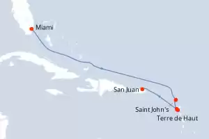 Itinerario : Miami, Saint John's, Terre de Haut, Basse-Terre (Guadalupe), San Juan
