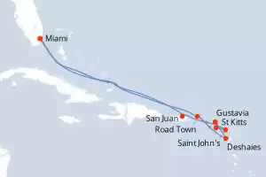 Itinerario : Miami, San Juan, Saint John's, Gustavia, Saint John's, Deshaies, Anguilla, Miami
