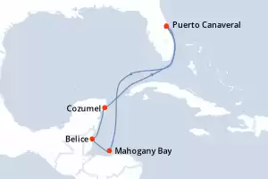 Itinerario : Puerto Canaveral, Mahogany Bay, Belice, Cozumel, Puerto Canaveral
