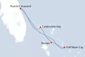 Itinerario : Puerto Canaveral, Celebration Key, Nassau, Half Moon Cay, Puerto Canaveral