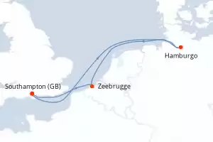 Itinerario : Southampton, Hamburgo, Zeebrugge, Southampton