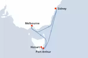 Itinerario : Sidney, Hobart, Port Arthur, Melbourne, Sidney