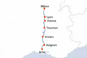Itinerario : Lyon, Mâcon, Vienne, Avignon, Arles, Avignon, Viviers, Tournon, Lyon