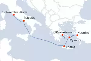 Itinerario : Civitavecchia - Roma, Nápoles, Chania, Kusadasi, Mykonos, El Pireo Atenas