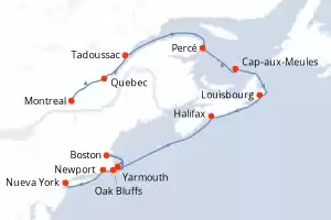 Itinerario : Montreal, Quebec, Tadoussac, Percé, Cap-aux-Meules, Louisbourg, Halifax, Yarmouth, Boston, Oak Bluffs, Newport, Nueva York