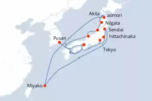Itinerario : Tokyo, Beppu, Pusan, Sakai-Minato, Maizuru, Kanazawa, Niigata, Akita, aomori, Hakodate, Tokyo