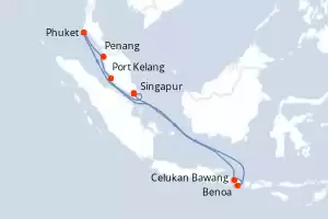 Itinerario : Singapur, Benoa, Celukan Bawang, Port Kelang, Penang, Phuket, Singapur