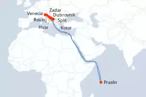Itinerario : Venecia, Rovinj, Zadar, Praslin, Split, Hvar, Korkula, Mljet, Kotor, Dubrovnik