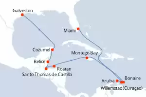 Itinerario : Galveston, Cozumel, Belice, Santo Thomas de Castilla, Roatan, Montego Bay, Willemstad(Curaçao), Aruba, Bonaire, Miami