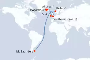 Itinerario : Southampton, Cork, Akureyri, Isafjordhur, Reykjavik, Hellesylt, Isla Trinidad, Southampton