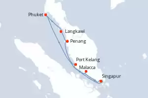 Itinerario : Singapur, Malacca, Penang, Langkawi, Phuket, Port Kelang, Singapur, Malacca, Penang, Langkawi, Phuket, Port Kelang, Singapur