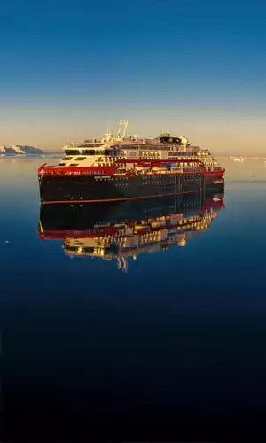 El MS Roald Amundsen y su barco gemelo, el MS Fridtjof Nansen, son dos barcos de expedición híbridos, lanzados respectivamente en 2019 y 2020, y nombrados en honor a famosos exploradores noruegos. Con 140 metros de largo, estos barcos de vanguardia integran una propulsión híbrida, reduciendo las emisiones de CO₂ en aproximadamente un 20 %. Pueden alojar hasta 530 pasajeros y presentan interiores con diseño escandinavo minimalista, tres restaurantes de alta calidad (Fredheim, Aune y Lindstrøm), un centro científico para enriquecedoras conferencias y un salón panorámico para sumergirse en los paisajes árticos y antárticos. Equipados con una amplia gama de herramientas personalizadas, como kayaks, drones submarinos Blueye y embarcaciones de expedición, estos barcos permiten explorar los lugares más remotos y salvajes del planeta.
