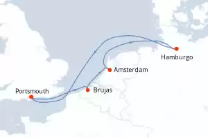 Itinerario : Portsmouth, Brujas, Amsterdam, Hamburgo, Portsmouth